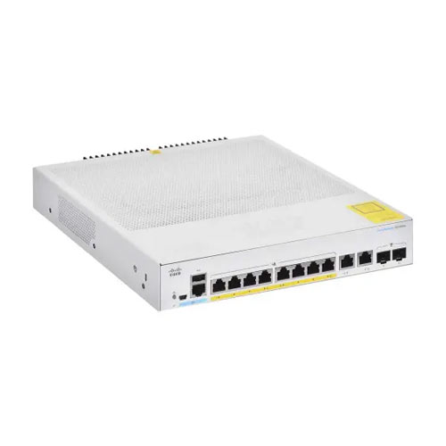 The Cisco CBS350-8P-2G-EU is a business-class 10-port managed switch with Power over Ethernet (PoE) and robust management features tailored for small to medium-sized businesses in Bangladesh. It offers 8 Gigabit PoE ports and 2 combo uplink ports (RJ45/SFP), delivering both power and high-speed data over a single cable.